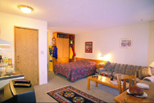 Diese Unterkünfte bieten Budgetzimmer, Kitchenettes, Studios sowie 1- und 2-Schlafzimmer Wohnungen. Beide Gebäude haben exzellenten Ski-in/Ski-out Zugang, Parkmöglichkeiten in der Tiefgarage, Schließfächer für die Skiausrüstung, eine Sauna und einen Whirlpool.
