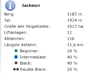 Teton Village liegt 15 Minuten von Jackson entfernt und befindet sich direkt am Fuße des Berges von Jackson Hole. Mehr und mehr entwickelt es sich zu einem Ort mit gehobenem Standard. Auch dort können wir Hotels und Appartements anbieten. Es fahren regelmäßig Shuttlebusse zwischen Jackson und Teton Village. Jackson Hole ist einer der herausforderndsten Skiberge Amerikas und zeichnet sich auch durch seine langen, konstanten Abfahrten aus.